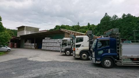 自社配送大型15t積み2台、8t積み1台、3t積み1台、 原料運搬車8t積み深ダンプ2台にて、近県は自社便で配送しております。 |