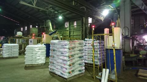 造粒機(低水分式ディスクペレッター)原料を造粒機(低水分式ディスクペレッター)に投入し、直径4mmの円柱状(ペレット)に圧縮し、長さ5mm~10mmに切断します。 |